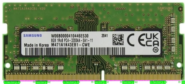 Samsung M471A1K43EB1‑CWE — это OEM‑модуль памяти DDR4‑3200 ёмкостью 8 GB, работающий на напряжении 1.2 V и поддерживающий скорость 3200 MHz при CAS‑латентности CL22. Одноранговая архитектура 1Rx8 обеспечивает стабильную работу при повседневной нагрузке и облегчённый процесс обновления памяти. Форм‑фактор SO‑DIMM с 260 контактами гарантирует совместимость с широким спектром ноутбуков и мини‑ПК. Этот модуль предназначен для пользователей, стремящихся повысить отзывчивость системы — будь то мультимедиа, офисные задачи или лёгкое игровое использование — в сочетании с энергоэффективностью и надёжностью Samsung OEM‑решения.